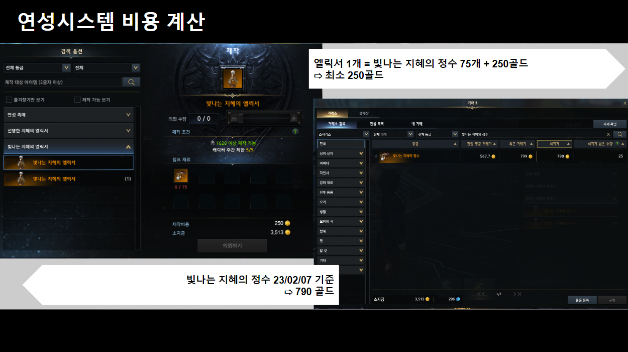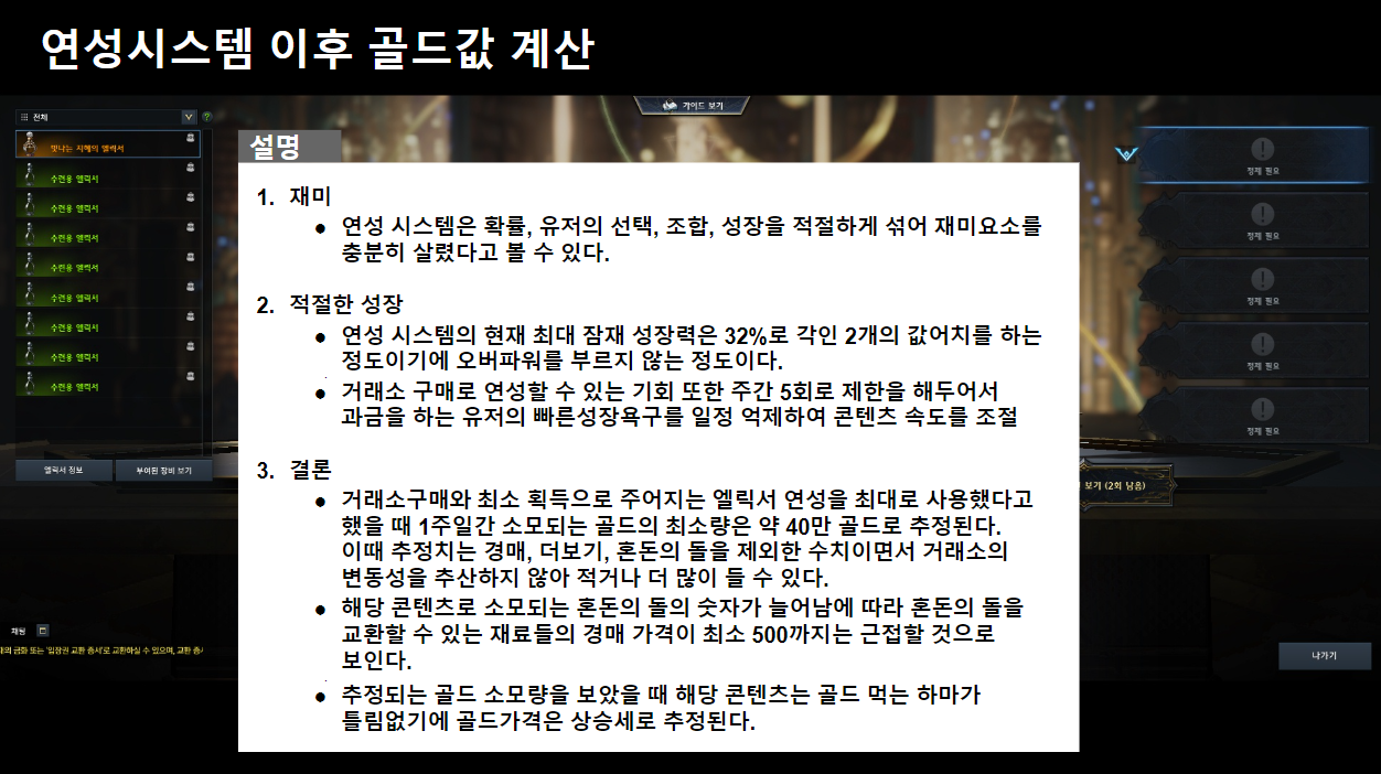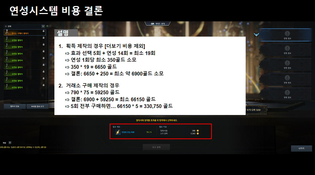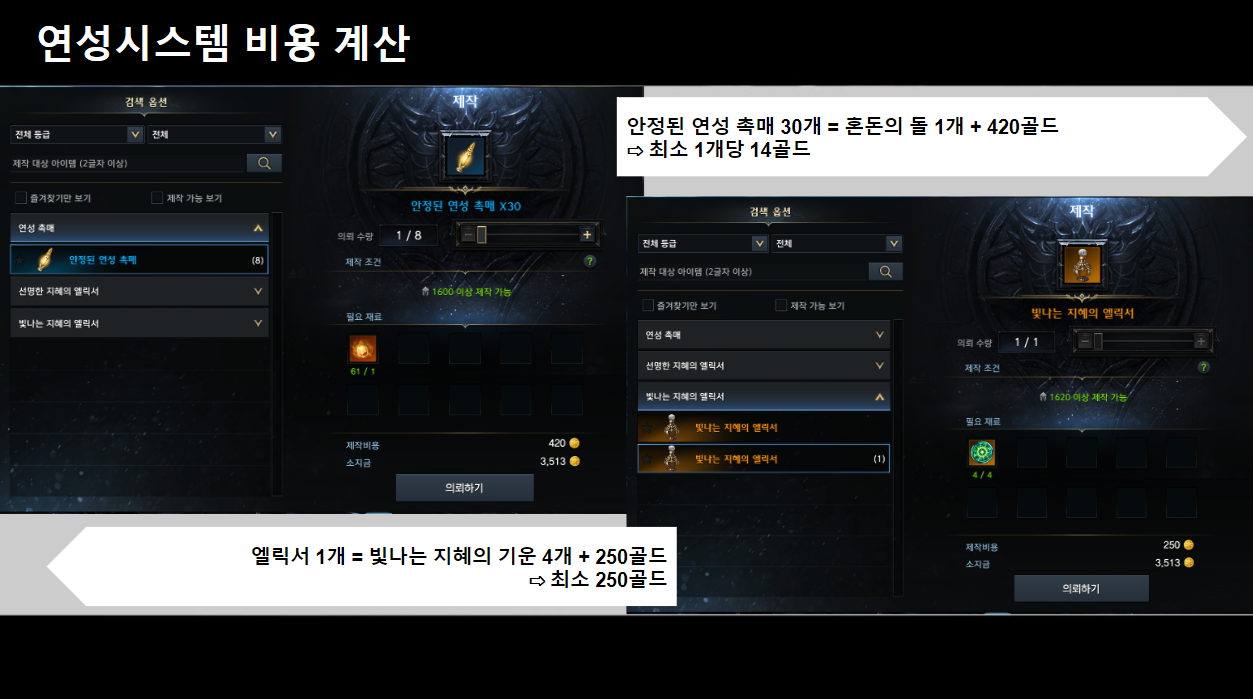 [로스트아크] 연성시스템 비용 및 골드값 유추